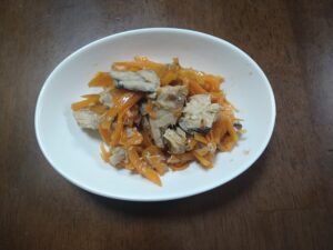 材料:にんじん1本、シーチキンかサバの水煮1缶、しょうゆ